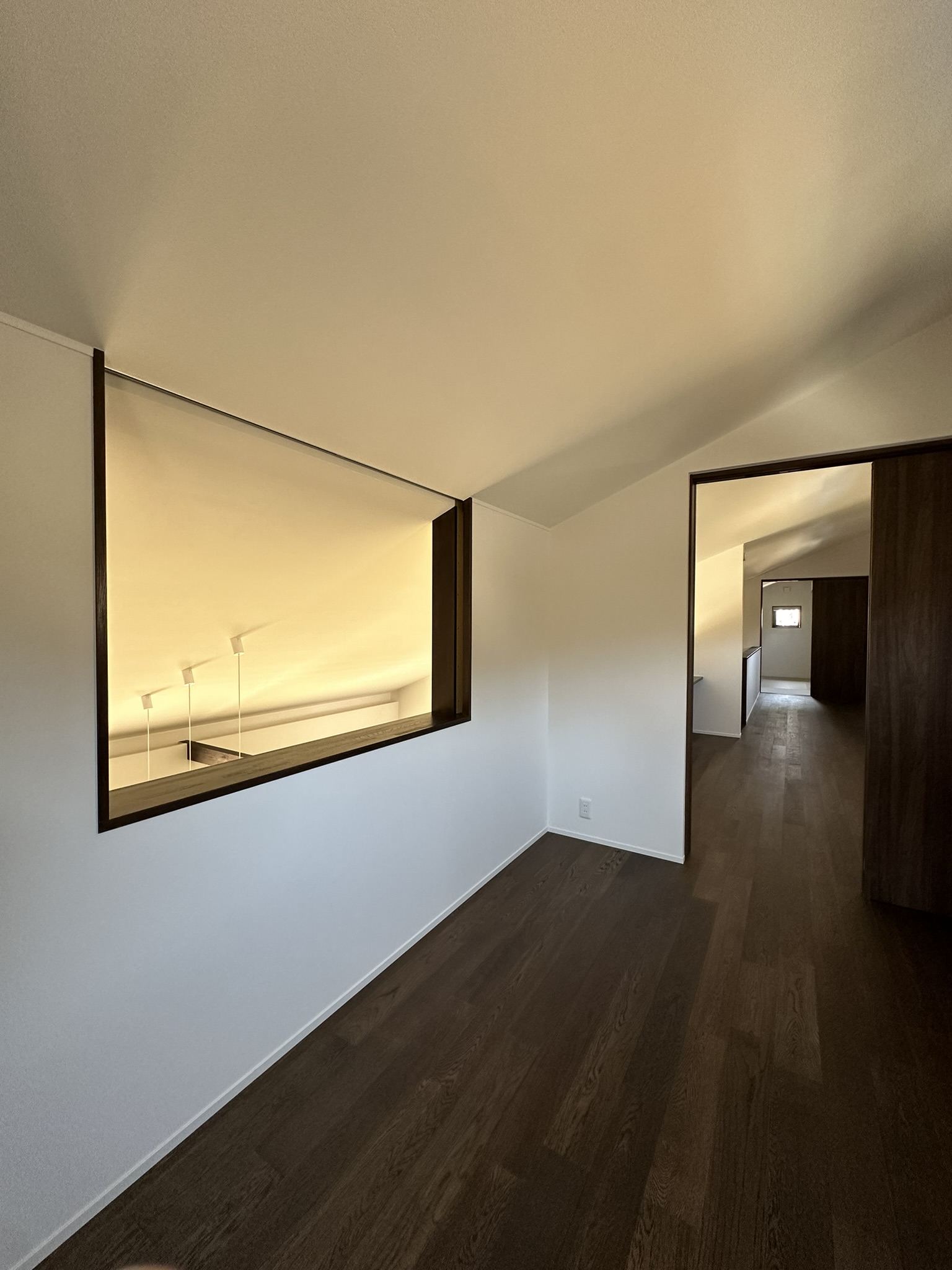 例えば、窓枠は一般的に無難な白が選ばれることが多いようですが、彦根先生が多用されるのは黒で、私はまずそこに惹かれました。窓枠が黒だと、フォトフレームのようにスパンと切り取られるので、風景が際立って見えます。また、2階の窓は普通、もっと大きくするところでしょうが、2階はあまり使いませんし、家具が置けなくなるので、あえて小さくしました。私は大きさよりも、窓のアシンメトリーな配置や、不規則に並んでいることのほうが気になります。そうした感覚は彦根先生に近く、構造的な問題で主寝室とキッチンを反転させることになったときも、無駄な出っ張りを無くし、南面を面一に収めてもらいました。ラインがすっきり整い、さらによくなったと思います。
