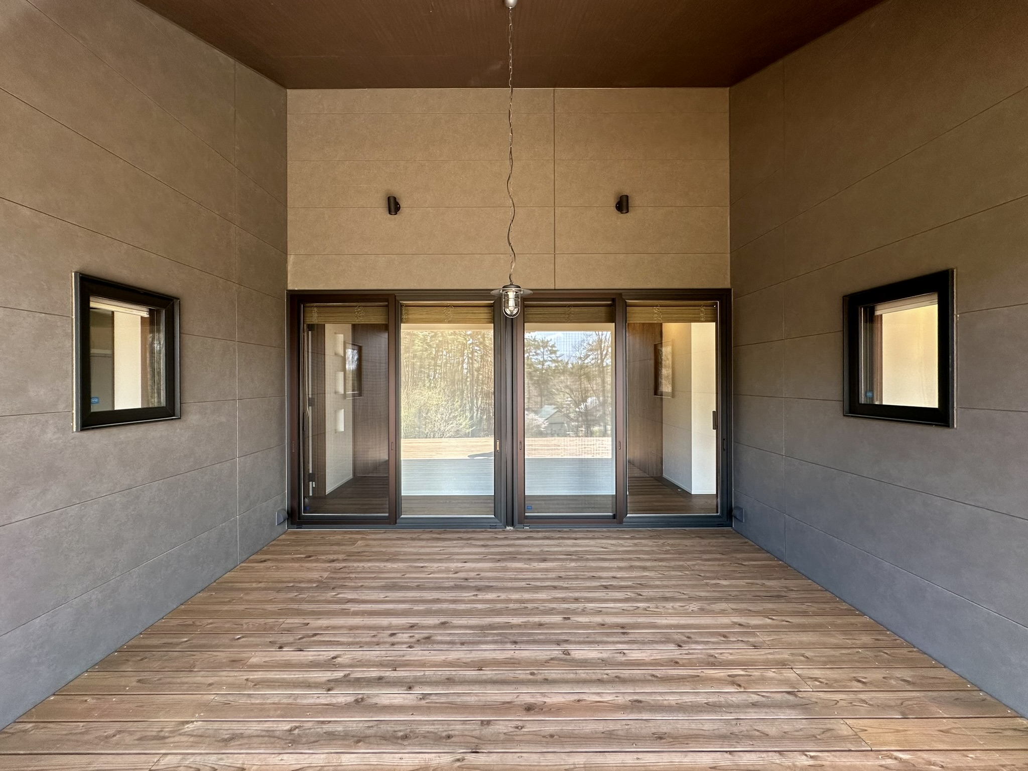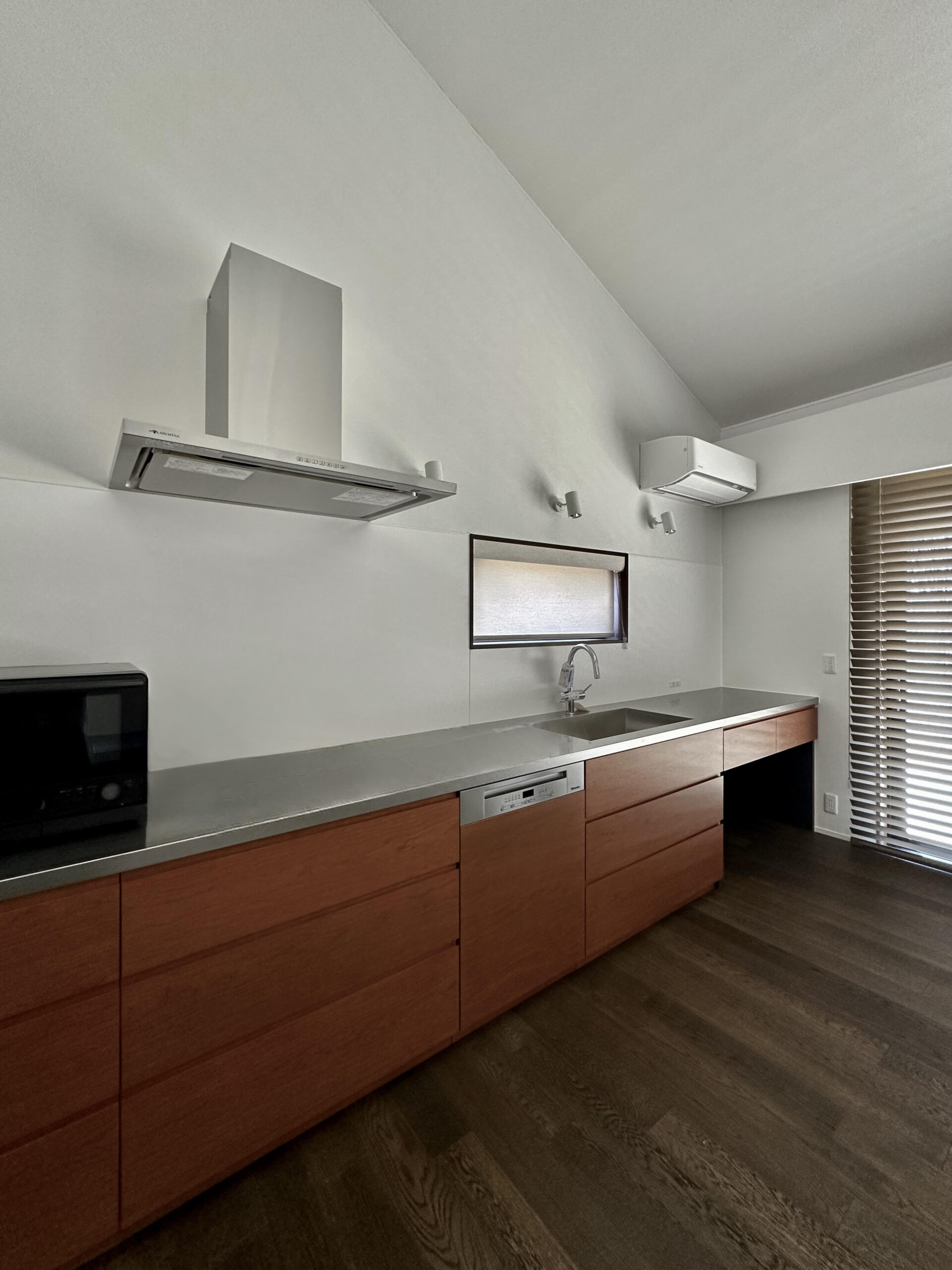 このプロジェクトも基本的な間取りと建物の構成が決まったところから引き継がせていただいたのですが、仕上げや機器の選定にあたっては私達だけでなく、SK様ご自身もたくさん調べて比較検討をしてくださいました。SK様が見つけられた製品の中でも最大の収穫はアウトドアダイニングのための、しまうことができる網戸でした。外のダイニングを使わない時期や、虫の少ない時期はなるべく邪魔にならないように格納されていることが求められましたが、考え得る解決策の中でのベストアンサーであったかと思います。