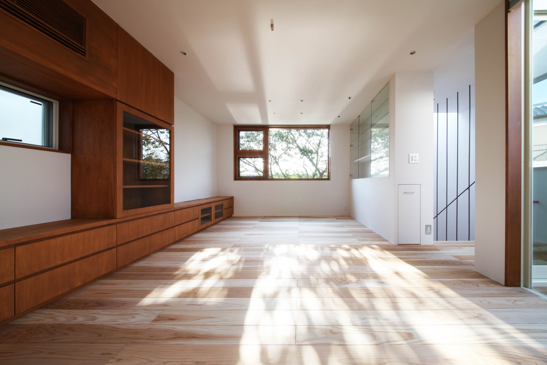 桜の木は2階リビングの真正面に位置しているので、壁にシルエットを映す時間になると部屋の中にも枝葉の影が落ちる。